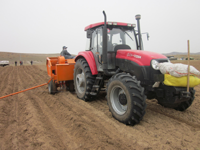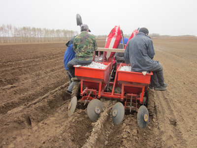 兩壟馬鈴薯播種機作業